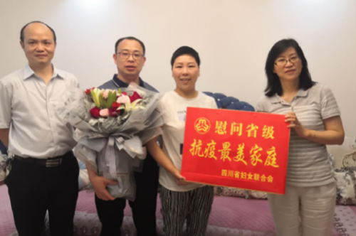四川新闻网达州6月1日讯(罗海英)近日,四川省妇联党委书记吴咏梅看望慰问渠县人民医院省抗疫“最美家庭”覃艳红家庭,送去妇联组织的关心和问候。渠县妇联副主席蒲桂楠、渠县人民医院工会主席胡克波、妇委会主任罗海英参加慰问活动。 合影留念 在覃艳红家里,吴咏梅向她们表示热烈的祝贺及崇高的敬意,并送上鲜花和慰问品。在听取了覃艳红的援鄂抗疫经历后,吴咏梅高度赞扬她危急关头、主动请缨、逆行而上、冲锋在前,勇于担当,用生命守护人民群众生命安全和身体健康,充分彰显了大爱无疆精神,无愧是新时代最美家庭的代表!并向家人的理解和支持、默默地牺牲和付出表示衷心的感谢。同时希望她们再接再厉,再创新功! 吴咏梅表示,广大家庭要以她们为榜样,众志成城,携手并肩,为抗击疫情做出自己应有的贡献!同时要求相关部门要继续做好抗疫一线医务人员及家属关心关爱工作,妇联作为娘家人,要切实做好她们的坚强后盾。