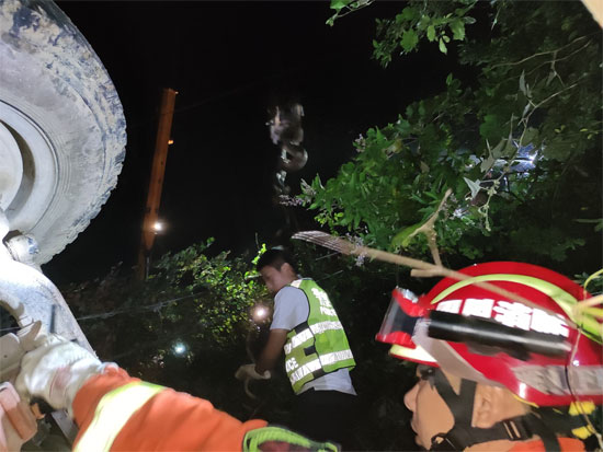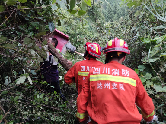 四川新闻网消息(记者 余开洋)7月22日17时58分,达州市消防救援指挥中心接到群众报警称:渠县临巴镇龙寨村一货车发生侧翻,造成一司乘人员被困在驾驶室。接群众警后,渠县賨都大道消防救援站立即出动一辆抢险救援消防车6名消防员紧急前往处置。经过消防指战员近4个小时的紧张处置,被困人员被成功救出。 当日下午18时33分,当消防指战员到达现场后了解到。因最近暴雨道路湿滑,货车在行驶过程中,不慎冲出了道路并悬停在半山腰,副驾驶有一名女士被困。消防指战员目测,此时货车位置离山底约有20米高,离公路约有5米左右,且货车倾斜角度过大随时有二次侧翻的危险,情况十分危急。 经过短暂的讨论,指挥员决定加固货车并联系吊车帮助处置。等待过程中,消防员不断安抚开导被困人员。 20时47分,吊车到达现场,指挥员与吊车师傅进行充分讲解交流后,在吊车师傅反复调整支撑位及货车吊升位置后,于21时52分将货车吊升并固定,消防员确认安全后迅速进入驾驶室开展救援。21时58分,消防员成功将被困人员救出并送上救护车。(图由达州消防提供)