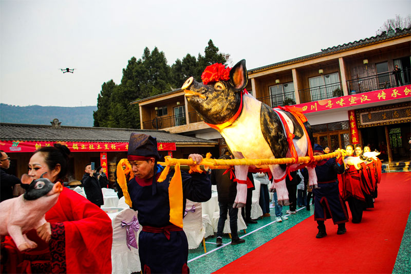 在开幕式活动现场,设置有祈福仪式、猪王展示、上五谷杂粮、百米酥肉展示、开笼仪式等特色民俗表演和刨汤宴品尝以及现场抽奖等环节,让消费者在品味团圆饭的同时,亲身体验巴文化、非遗文化的独特韵味,感受宣汉刨汤宴的文化魅力。