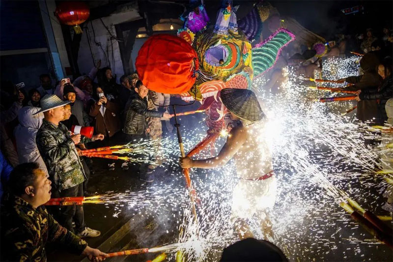 目前,16人一组的火龙队、20余名打铁花手艺人已在紧张地排练中;石桥武术协会369名非遗文化传承人也已开始每周2至3次的排练,届时龙狮团2条彩龙、4只彩狮也将闪亮登场,在元宵节为游客带来法门武术、翻山铰子、舞狮舞龙等系列表演。