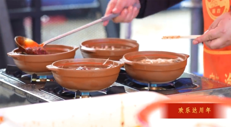 砂锅米线,顾名思义就是用砂锅炖煮的米线,不仅能保持食材的新鲜和原汁原味,还能让汤底更加浓郁。作为达州一张靓丽的名片,砂锅米线以麻辣鲜香为主,是极具特色的地方小吃,承载着达州人的独特记忆。本次活动汇聚各种口味的砂锅米线,以美食为媒,给市民朋友们送去节日祝福。