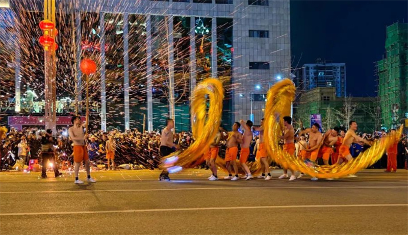 活动于19时在橄榄广场正式拉开帷幕,首先是暖场活动,群众表演队伍共舞《万树繁花》,以优美的舞姿和欢快的节奏,迅速点燃了现场的气氛。随后祥龙出海音乐响起,彩龙船、水族精灵、龙狮纷纷登场。各行业优秀代表为火龙和祥狮点睛,寓意着赋予它们生命与活力。随后,巡游表演开始,从橄榄广场出发,所到之处,舞龙舞狮与打铁水表演相互辉映,将活动氛围一次次推向高潮。